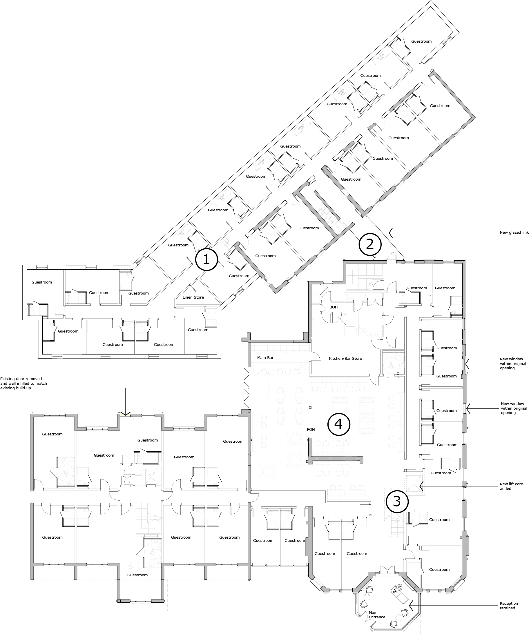 - Improvements to the bedroom layout, so the rooms better meet modern hotel standards and offer a suitable mix of room types.